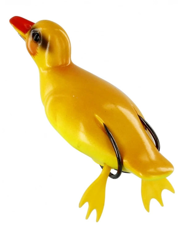 They will go crazy for this baby duckling! Super weedless design to be fished in heavy cover. Just imagine a big bass inhaling Danny in front of you! If you twitch him, Danny will swing out 180-degrees in tight short swings and stays long on the hot-spot, fish him fast or slow, either way you can create that hopping action with a unique bubble trail just like a fleeing duckling, the beak will also add a unique front splash, don’t forget the pause! The small soft feets adds extra attraction fluttering below the surface. This is such a cool and fun lure to fish with. Thanks to the hollow body Danny will collapse around the double-hook with high hook up ratio. Nasty predators are waiting for soft Danny, dead or alive! Quack quack! Material: Soft PlasticTop Water lureJapanese-style Carbon Steel, wide-gap double-hookWeedless designLife-Like Lure180-degree swing when twitchedHopping action with bubble trailSoft feets for enticing underwater actionHand painted detailed colors