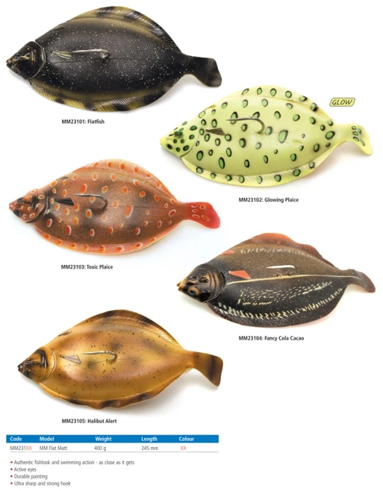 When the huge halibut settle down in shallow, sandy areas, they’re just waiting for little plaice and flounder to flicker overhead. And when Flat Matt shimmies along, swimming for all the world like a panicky little flounder, they can’t help themselves. You’ve never fished anything like this before! Jig it with short, distinct pulls on the rod to keep him wriggling tantalisingly close to the bottom, or tease him slowly upwards into the Pelagic zone to trigger an explosive response.Life-Like LureDesigned for huge cod and halibutActive eyesDurable paintUltra sharp and strong sea fishing hookHook: Single #10/0Includes spare body