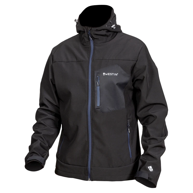 Not too thick and not too thin, it’s the perfect weight for cool mornings and crisp evenings when the bite is on. The tough, water-resistant softshell keeps fog and mist from penetrating your clothes, while soft fleece lining on chest, back and hood keeps you warm.Outer shell: 4-way stretch softshell with wind and water resistant TPU membraneInner lining: Polar fleeceAdjustable hoodAdjustable hemYKK front zipper2 side pockets with SBS zippers1 chest pocket with SBS zipper2 open inner pockets